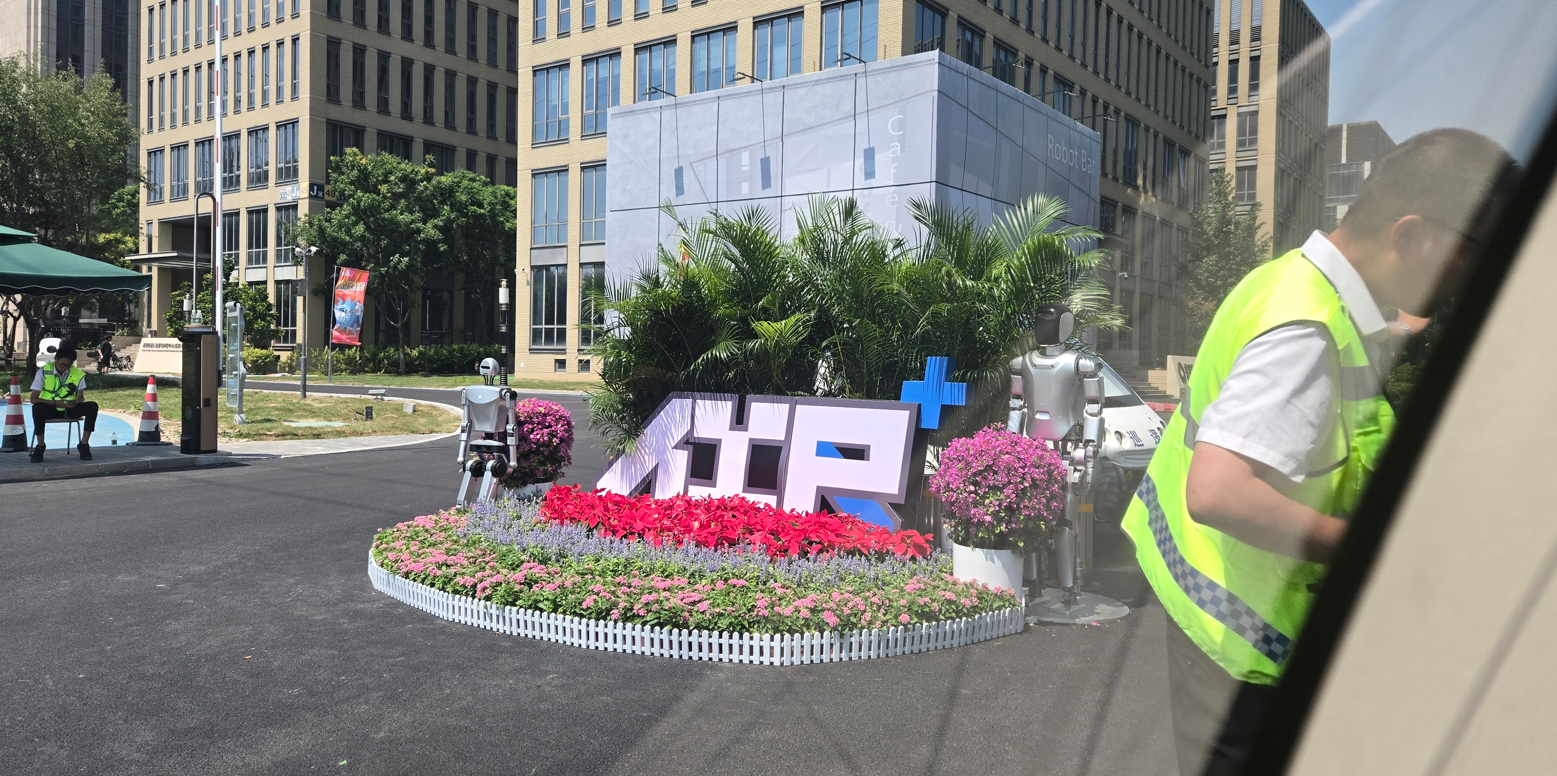 입구에 있는 간판 앞에서 기념촬영! 점점 포즈가 중국 스타일이 되고 있다. (중국 기업인들은 V, 엄지척 이런 것 안한다.)